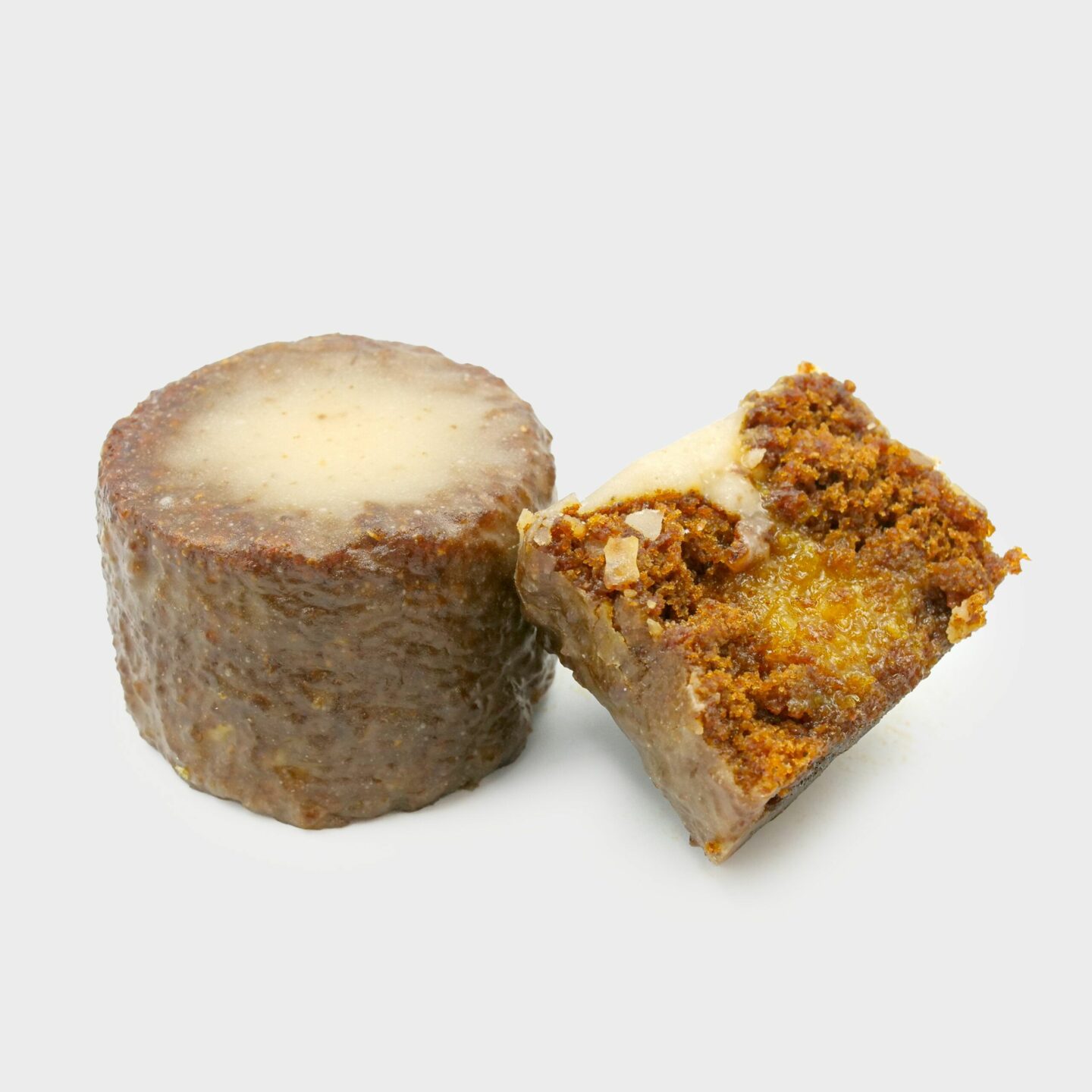 Spécialité Dijonnaise fabriquée par nos soins : pain d’épices et cœur de marmelade d’oranges.